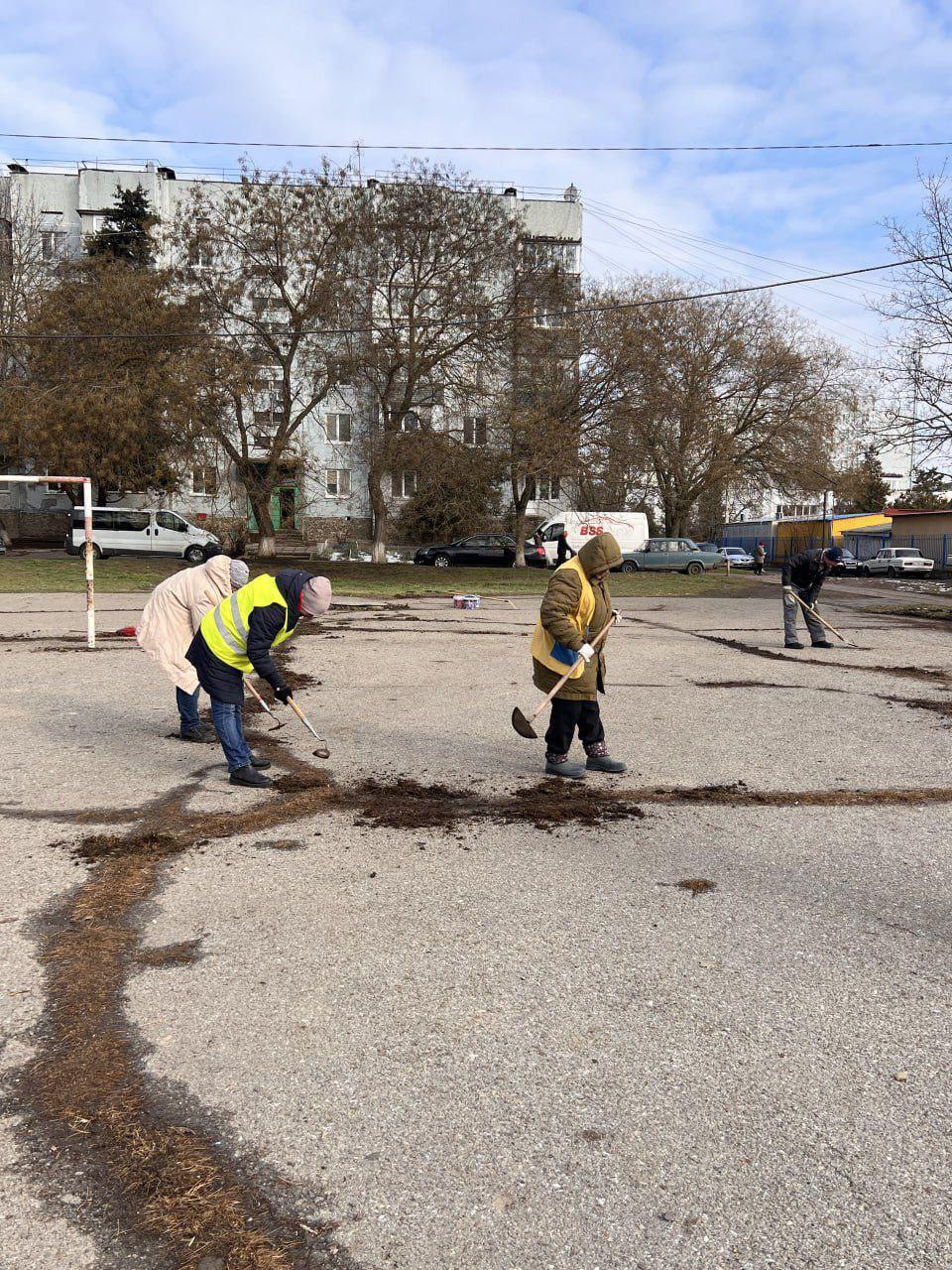4 березня, бригада озеленювачів ТОВ “ЖЕБП Наше місто-21” проводить прибирання території площі.