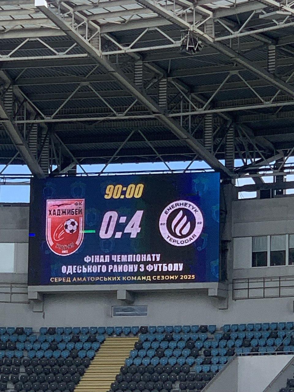 29 червня 2025 року на легендарному стадіоні Чорноморець відбувся фінальний матч Чемпіонату Одеського району з футболу між СК «Енергетик» (Теплодар) та ФК «Хаджибей» (Усатове).