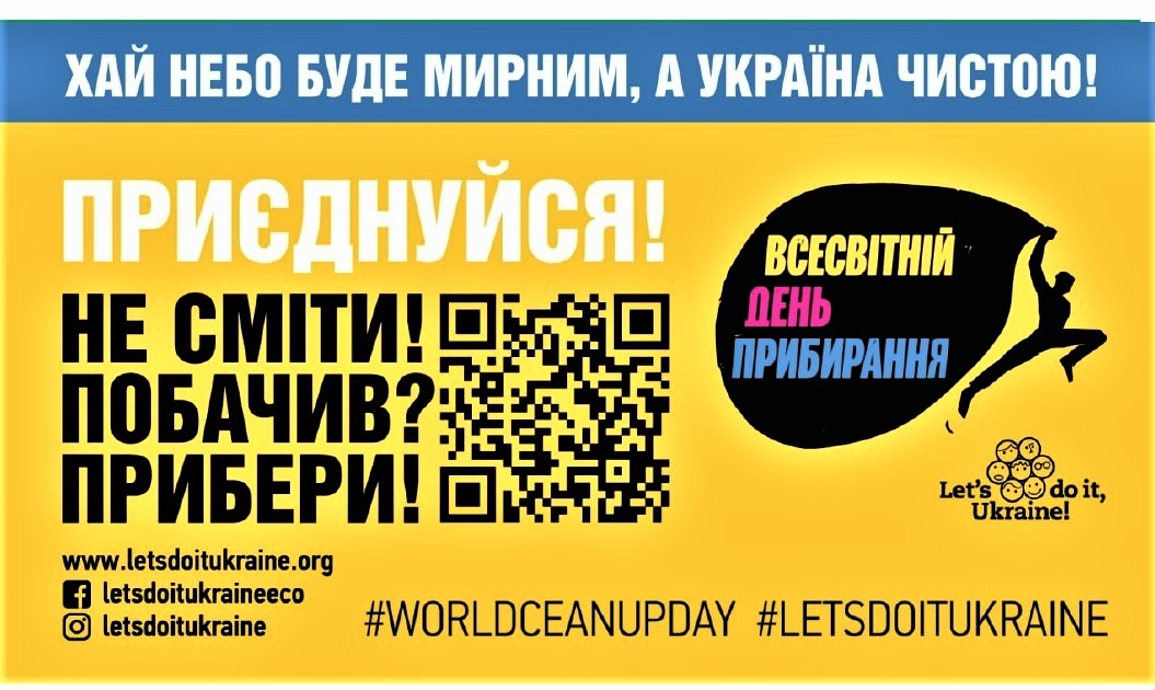 20 вересня 2025 року Україна долучилася до Всесвітнього дня прибирання «World Cleanup Day» — наймасштабнішої екологічної ініціативи у світі, яка щороку об’єднує понад 114 мільйонів учасників у 211 країнах. Акція спрямована на формування культури чистоти, дбайливого ставлення до довкілля, відповідального споживання та правильного поводження з відходами.